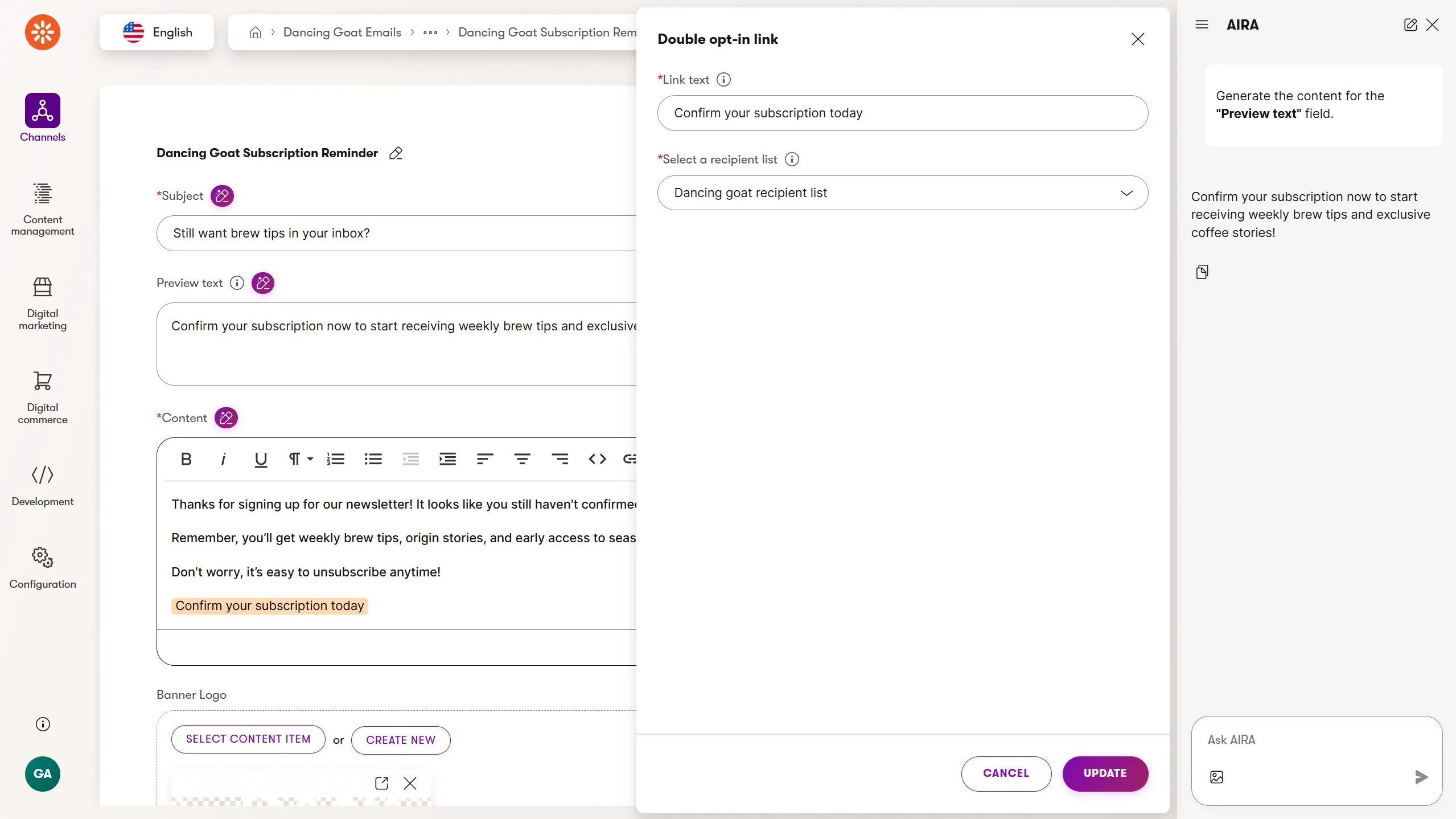 This means you’re no longer evaluating the automation in isolation. You’re evaluating the entire subscription experience as a coordinated effort, and AIRA can assess campaign performance against the goal you set.