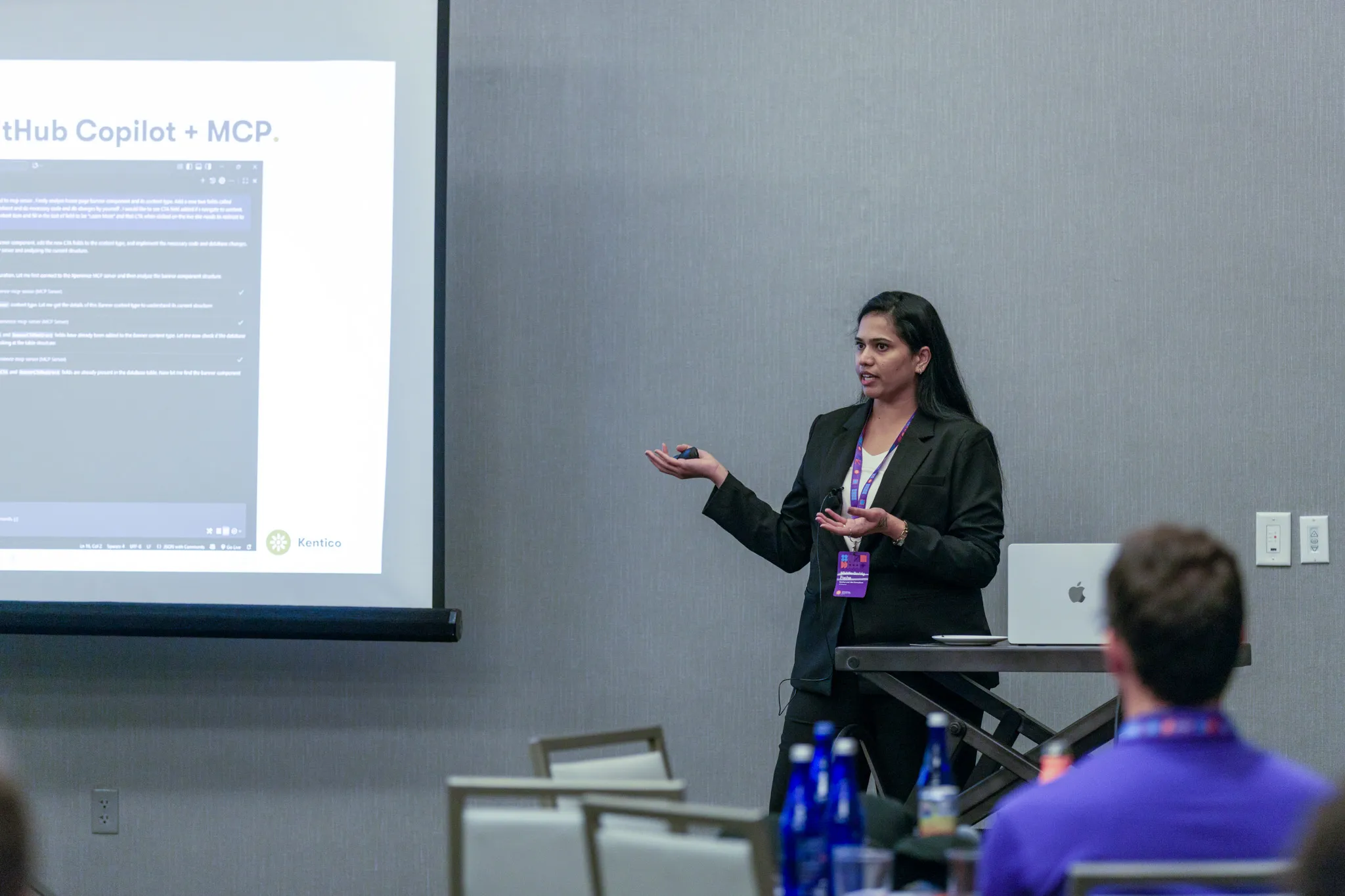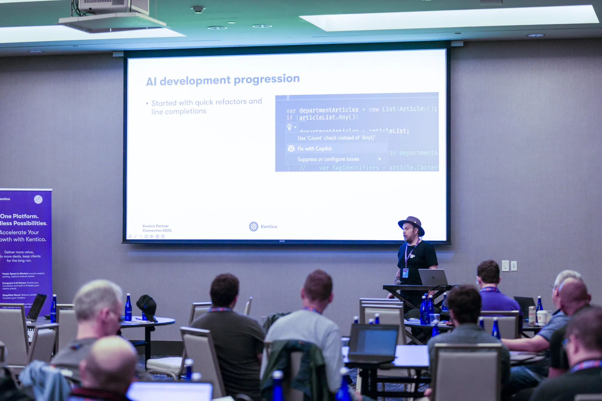 In her talk, “Advancing Development with AI: From Code to Collaboration,” she showed the audience that AI is stack-agnostic and therefore equally capable of accelerating .NET Core and Xperience by Kentico projects. AI’s impact isn’t limited by language or framework; it’s limited by how we use it.