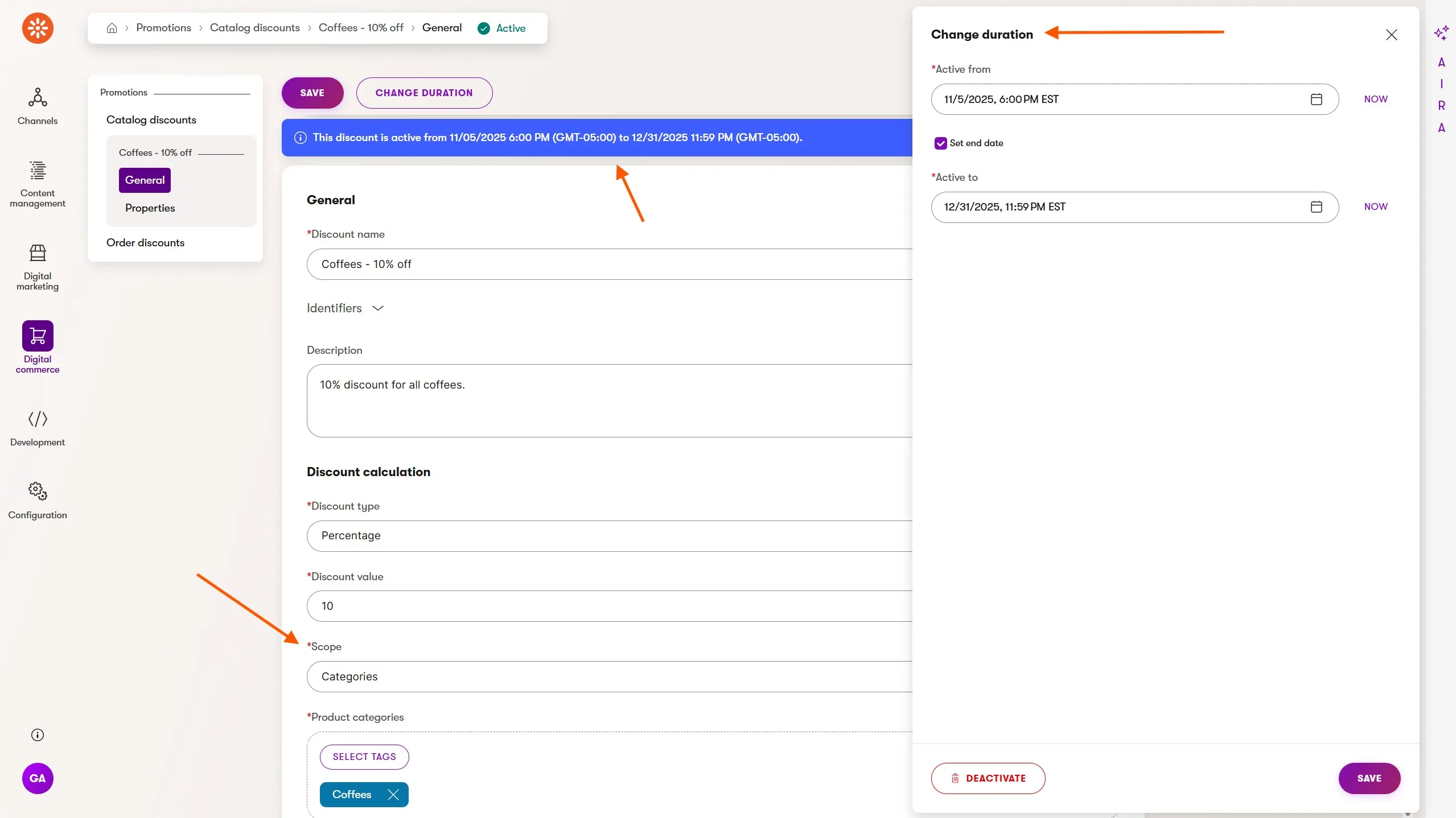 Marketers can configure start and end dates for discounts, making seasonal promotions a breeze to set up.